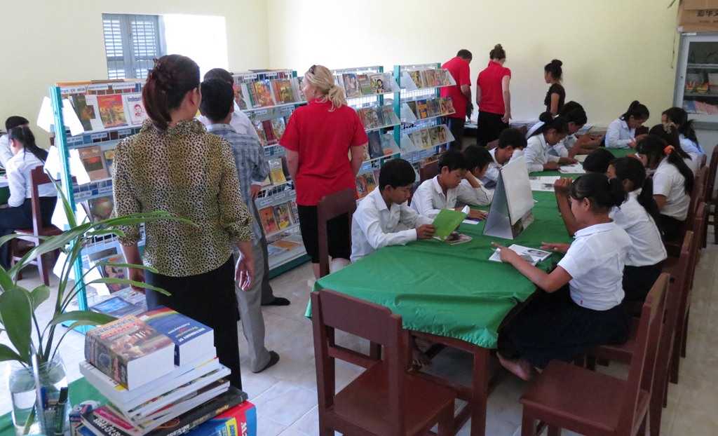 Established with the support and financial assistance of the Rotary Club of Dubbo Macquarie, after member Glenys Mulholland visited CLS in 2011, the Library has gone from strength to strength, and is a very valuable resource for CLS. The books and resources are provided free for the use of students and people from the community. Library classes are held, and there is often a teacher available to help people from the community with their reading. During last year’s visit, our team made had a book-buying trip in Kampot (and in Phnom Penh for those books we couldn’t source locally) to purchase English and Khmer text books and resources to stock the library. We also donated some of these books to the State School, because the students of CLS benefit from the sharing of resources.