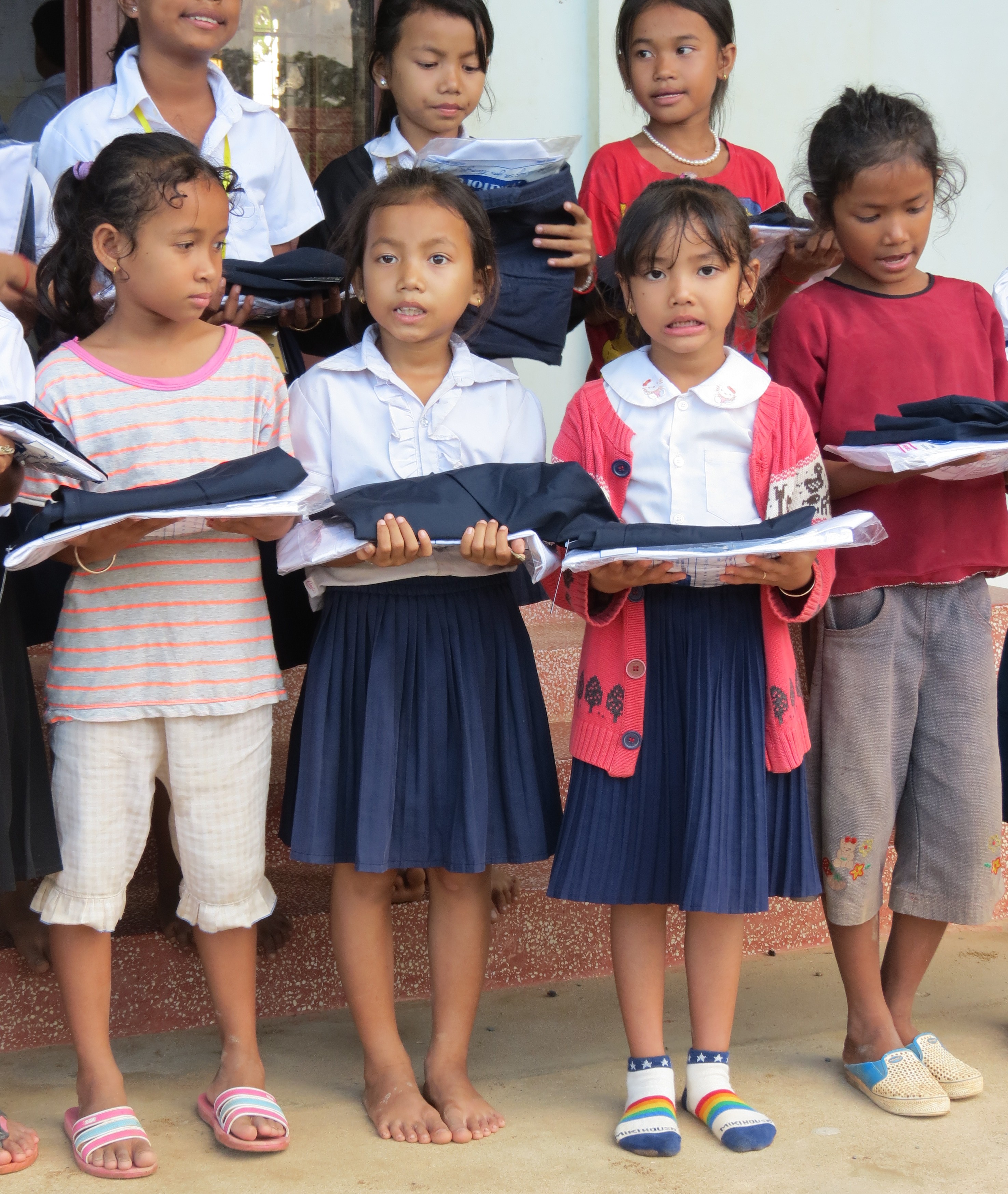 We were delighted during this visit to bring with us an extraordinarily generous donation from Dubbo businesswoman Adele Oulton, who supplied dozens of brand new white shirts, navy skirts and navy school pants and shorts for the scholarship students of CLS. The delight on their faces was worth hauling the two massive bags all the way from Oz. Thank you a thousand times over to Del for her incredible generosity. These children rarely, if ever, get anything new – and to see their little faces light up at being given these pristine clothes (all still in their plastic and with tags attached) was beyond priceless. Some of the shorts and skirts were a tad large (these little poppets are minute) so local social enterprise, Dorsu (which is a tailoring/sewing business that employs and teaches locals to sew) helped by altering the garments to fit.