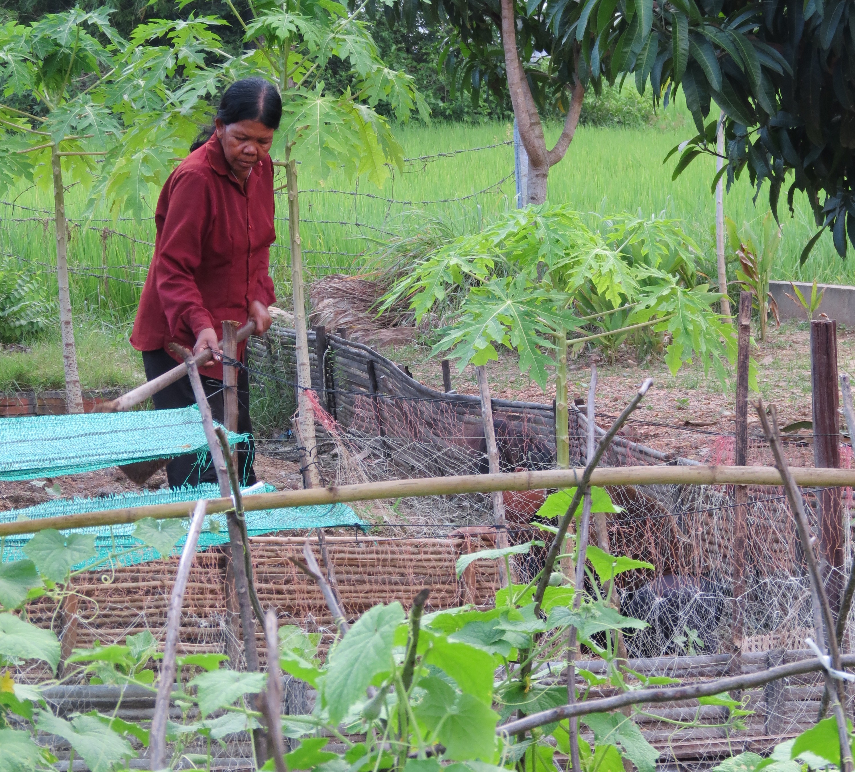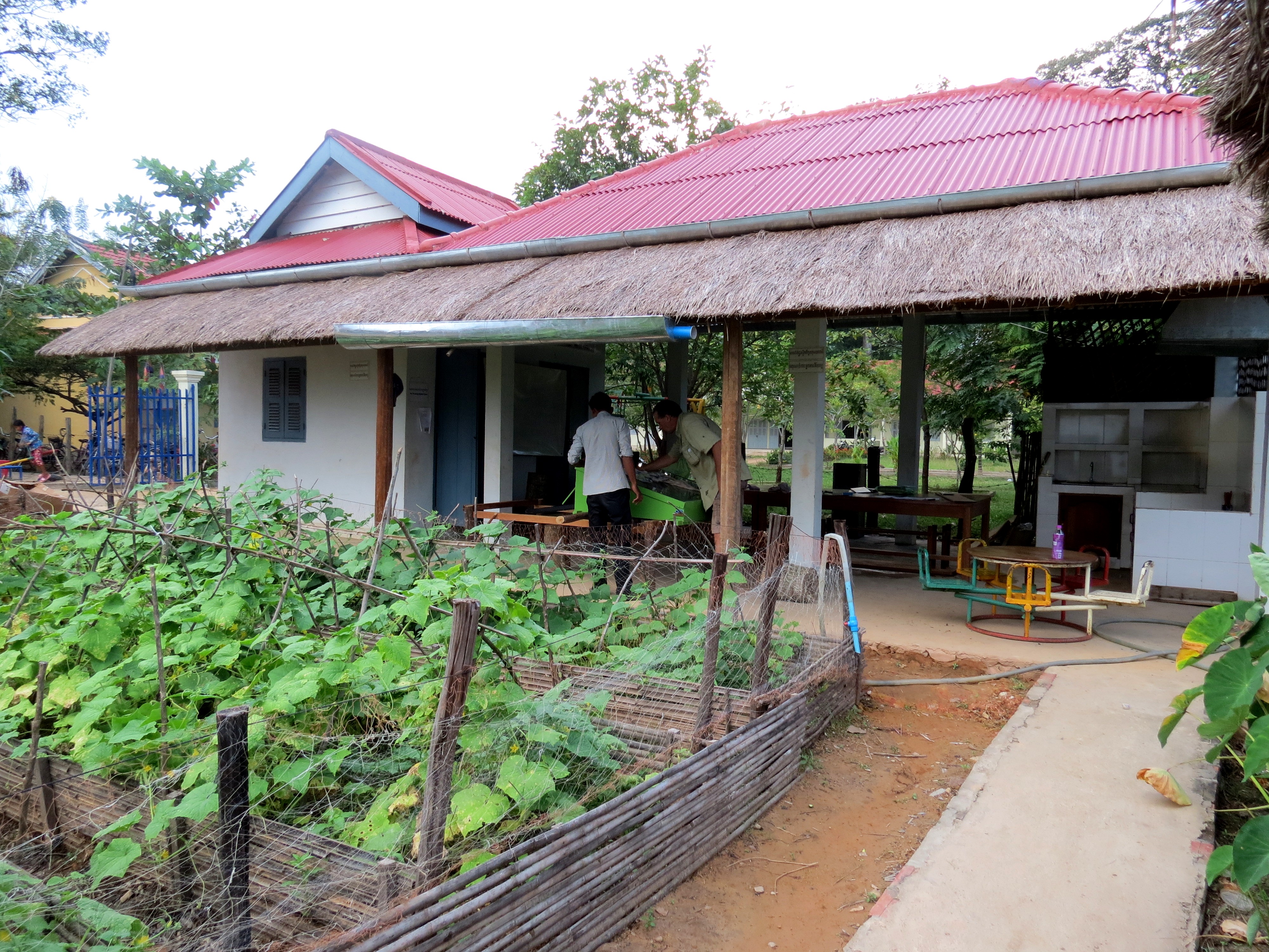 Being from the bush, an’ all, we have been particularly thrilled with the progress of the agriculture project and plot at CLS, which is lovingly tended and co-ordinated by Sony, one of CLS’s wonderful teachers. This past few weeks has seen a bumper cucumber crop – and I swear you can almost hear them growing! The vegetables (the plot is also growing Chinese radish and some carrot-like vegetables, with tomatoes planned when they come back into season) are used to help supply the Soup Kitchen Project (see below) and it’s hoped to eventually grow enough to sell some for profit in town. Sony spent some time last week hawking the cucumbers around town to some of the restaurants – which was terrific motivation. All the vegetables are grown organically. The compost is made by local volunteers who come to the school and mulch up all manner of organic material they find around the community – this is then turned into compost and used on the furrows. Sony tells me he has used the resources in the library and on the internet to research ways to grow organic vegetables and make his own natural pest repellants. Eventually, Sony would like to extend this project to teach students and community members about organic farming practices.
